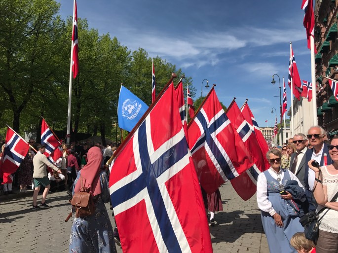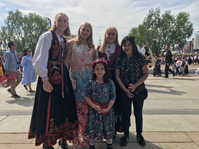 We celebrated May 17 in Oslo. The highlight of the day is NOT a military parade but more than 60,000 children, most of them in marching bands, with Norwegian flags or in their national costumes. What a fantastic parade to watch!